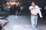 | | “我一直以為我是圣斗士”——羅子丹最新行為藝術(shù)作品 評論6 (發(fā)布于2005-11-25 17:28:09 點擊6320) 投影儀投射的圖片開始透過羅子丹的上半身。羅衣著暴露,并頑固的把持著他的“圣斗士之劍”。羅將劍揮向投影屏幕上自己不同精神氣質(zhì)的照片,另一只手用力的拍著胸膛不斷高喊著日語——“哇達西哇”(意思“這是我”)。我們相信,在羅子丹軀體痙孿著的某一束肌肉,一定感應(yīng)著日本民族某種劣根性的蠢蠢欲動。