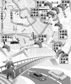 位于黑牛城道上的洪澤路人行天橋及昆侖北路上的魯山道人行天橋、位于紅旗南路上的體育中心人行天橋和位于衛(wèi)國道上的登州路、沙柳北路人行天橋5座天橋,將統(tǒng)一以近期將開建的尖山路人行天橋為建設樣本。