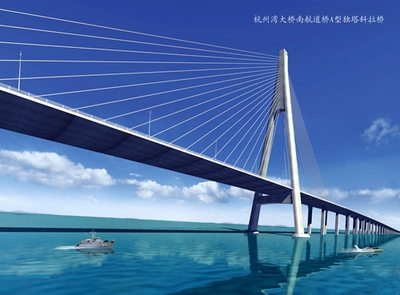 杭州灣大橋南航道A型獨塔斜拉橋效果圖