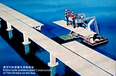 杭州灣跨海大橋工藝--海中70米梁整孔預制架設