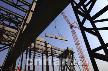 106米的跨度,不能像橋梁一樣采用斜拉等受力方式,因此箱形梁全部采用11厘米的超厚鋼板,以增加強度。這種厚板在國內(nèi)大跨度鋼結(jié)構(gòu)中是首次使用。據(jù)介紹,大劇院明年進入裝修,2007年投用!