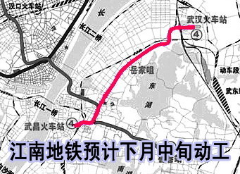 連接未來武漢火車站和武昌火車站的江南地鐵(軌道交通四號線一期),預(yù)計下月中旬率先動建武昌站站點(diǎn),整條地鐵計劃2012年建成。