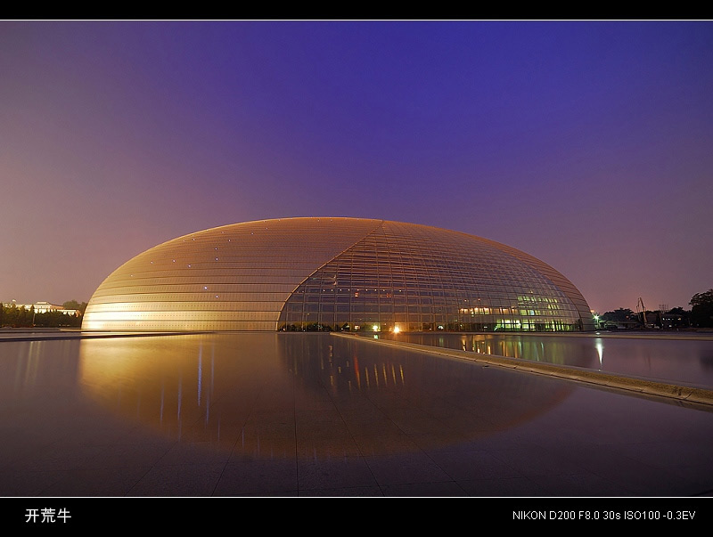 使用器材:Nikon D200機(jī)身 Sigma 10-20鏡頭 數(shù)碼 ISO100膠片 攝于中國(guó)國(guó)家大劇院首日對(duì)外開(kāi)放(2007-6-15)。 主要光線(xiàn)來(lái)自隔壁人民大會(huì)堂與天空日落的殘余。