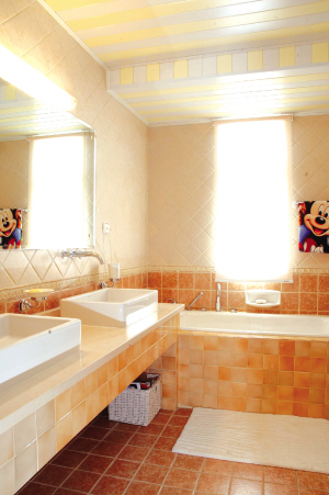 鄉(xiāng)居的主臥室不需要很寬敞,木制而結(jié)實(shí)的大床和樸素的布藝溫馨無(wú)比,滿(mǎn)承著鄉(xiāng)間純凈的陽(yáng)光,濃淡自如,絕無(wú)其他,這份純凈充滿(mǎn)了理性的精神追求。兒童房則因?yàn)橛辛藵M(mǎn)墻的綠意,使空間自然增添了鄉(xiāng)居的氣息。