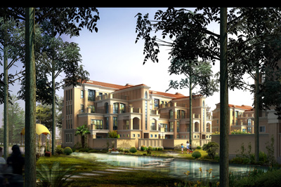 濱水花園洋房住宅效果圖