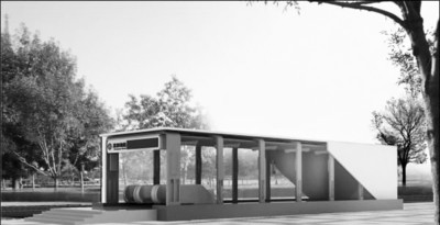 通過大面積運(yùn)用玻璃,將水晶的光亮和輕盈再現(xiàn)在出入口建筑的設(shè)計(jì)中。