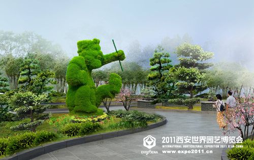園中的精彩看點(diǎn)還有一座5米高植物雕塑,系以成都天回鎮(zhèn)出土的東漢“擊鼓說(shuō)唱陶俑”為模型,雕塑集人文與園藝一體,神態(tài)動(dòng)作栩栩如生,恍若正在聲情并茂地“說(shuō)蜀之古,頌川之今”!