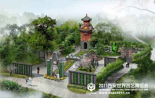 西安世園會(huì)成都展園,以“天府諧園”為主題,整體布局采用中軸線對(duì)稱式手法,景觀元素和造型創(chuàng)意均取自川西平原的特色建筑、民居、文物、園藝,均用生態(tài)環(huán)保材料建造而成。通過(guò)主軸線上的“蜀巷情深、塔映花溪”,軸線兩側(cè)的“景墻藝韻、竹篁森森、蜀花園藝”等景點(diǎn),從內(nèi)容、形式、意境上盡展天府之國(guó)的人文古韻和現(xiàn)代風(fēng)采共融相輝,人與自然萬(wàn)物的和諧共生。