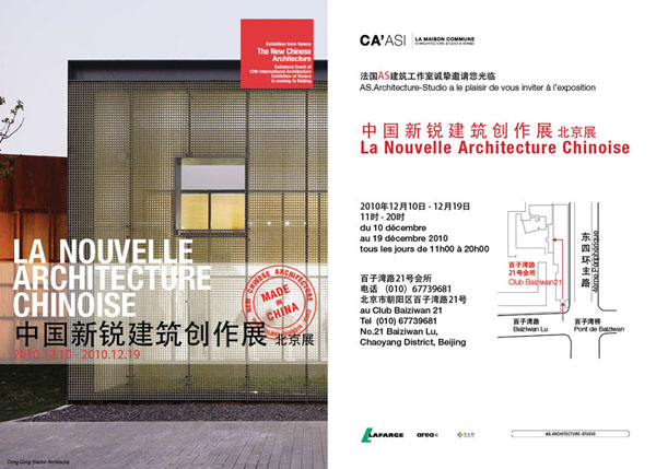 Following the successful opening of “New Chinese Architecture” in Venice, the exhibition will be on display in Club Baiziwan in Beijing, from December 10th to December19th.