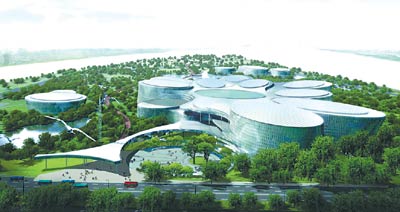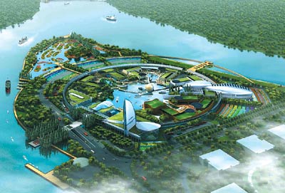總體規(guī)劃由水景生態(tài)公園、環(huán)狀鮮花梯田、科學(xué)樂(lè)園三個(gè)部分組成,主體建設(shè)由直徑560米的巨大圓形環(huán)廊圍繞。