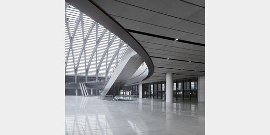 GMP設(shè)計了一個57米高、 400米長的有桶形穹窿屋頂?shù)能囌敬髲d,有24個站臺。