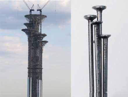 北京奧林匹克公園了望塔工程于2011年開始施工建設(shè),工程由五個高低不等、錯落有致的獨立塔構(gòu)成,最高為244.35米,最低為186米。據(jù)媒體報道,工程已突破200米,主體建設(shè)基本完畢,進(jìn)入內(nèi)外裝修階段。
