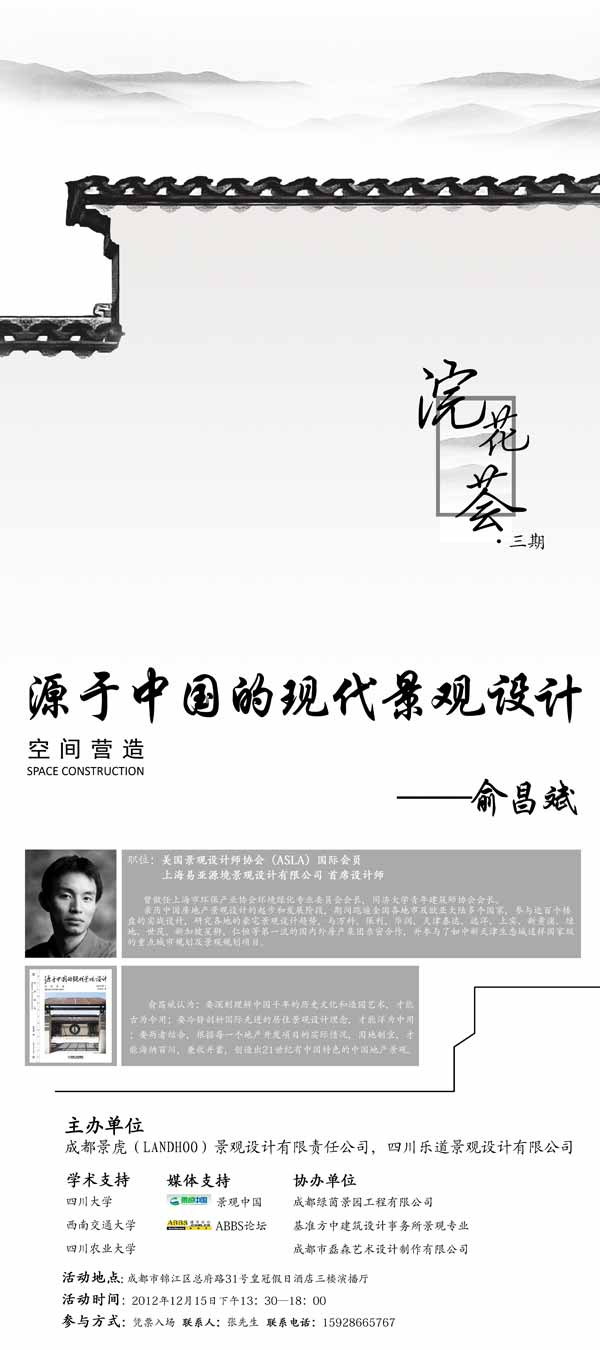 主講內(nèi)容:《源自中國(guó)的現(xiàn)代景觀設(shè)計(jì):空間營(yíng)造》