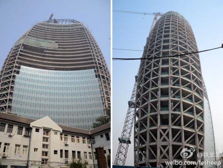 正在建設(shè)中的人民日報社新大樓,真真的不好看,有網(wǎng)友直言不諱的評論。一個叫風(fēng)中的葉子的網(wǎng)友說:這么像男性生殖器啊。下一張圖,角度逼真,像極了!