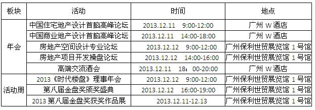2013房地產(chǎn)開發(fā)設(shè)計年會暨第八屆金盤獎活動周日程
