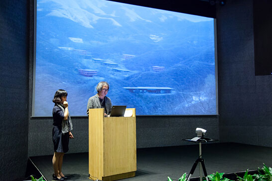 承先生用自己樸素自然的長(zhǎng)城腳下的公社、守白堂、晉陽(yáng)八景、韓國(guó)總統(tǒng)盧武鉉之墓、等作品為例,與現(xiàn)場(chǎng)聽(tīng)眾詳細(xì)的分享了他“地文”的設(shè)計(jì)理念。