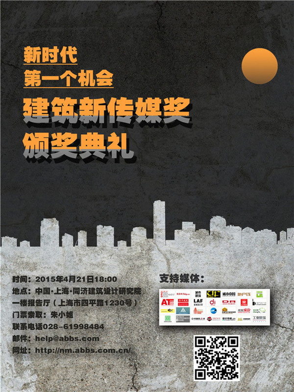 由建筑新媒體聯(lián)合會(huì)主辦,ABBS建筑網(wǎng)、林業(yè)出版社聯(lián)合承辦,上海朗詩規(guī)劃建筑設(shè)計(jì)有限公司協(xié)辦的建筑新傳媒大獎(jiǎng)的頒獎(jiǎng)典禮將在2015年4月21日17:30于中國•上海•同濟(jì)建筑設(shè)計(jì)研究院一樓報(bào)告廳(上海市四平路1230號(hào))隆重舉行!