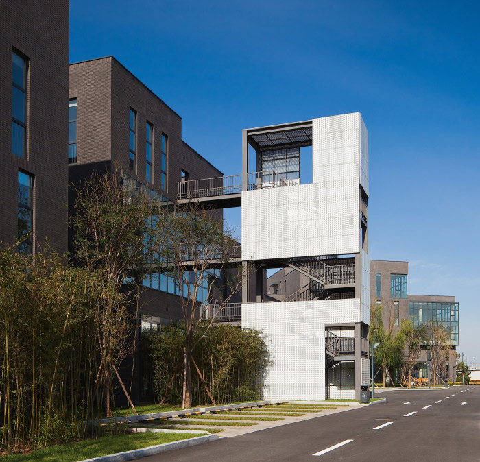 【王永剛】:樞密院的整體設計。這個項目是圍繞如何最有效地促進生產(chǎn)而進行的,因為這是一個特色的辦公區(qū)。所以為了規(guī)劃景觀、建筑全面綜合區(qū)域發(fā)展政策的設計,就此展開各自獨立的生產(chǎn)設計,滿足了不同規(guī)模的需求。能夠獲得較好的空間品質(zhì),規(guī)劃上盡可能弱化,相鄰的邊界在平面和豎向上樞密院都做到了,一期的小獨棟和二期的服務大樓也為企業(yè)規(guī)模的邊界進行了處理,因此說樞密院是通過對企業(yè)性的研究來尊重在這里的每一個企業(yè)和每一個人。