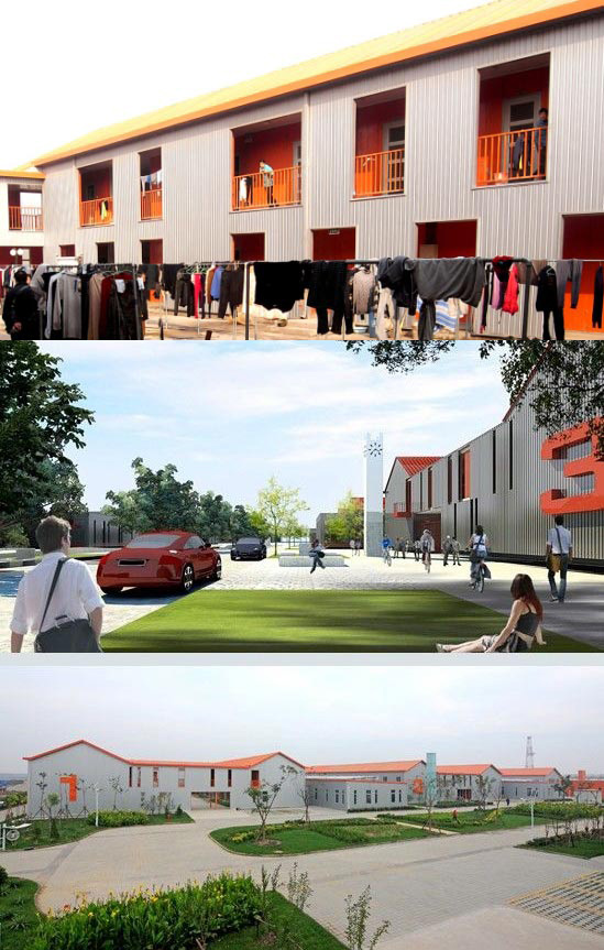 【曲雷】:這個項目不僅獲得了中國建筑傳媒獎,而且獲得了國際建筑師協(xié)會(AIA)的斯古塔斯獎。我和何勍在去年10月份有幸受邀到東京參加了在東京舉行的“國際建筑師大會”的頒獎典禮,第一次有機會同西薩等著名建筑師及國際建筑師協(xié)會的主席及組織者們一同坐在主席臺上參加了這個4年一次的頒獎典禮,提別是聆聽了70多歲的西薩在典禮中的方案介紹。我們更深的理解了設計及設計師的樸實,付出,才有可能出好的成果。設計無他,愉快的工作,潛心的思考,研究。才有可能清楚地面對這個價值觀不斷扭曲及變化的社會。生態(tài)城板房是我們多年的積累在一個易于實施的項目上的實踐。節(jié)能環(huán)保,可持續(xù)都是設計中附加的片面及皮毛,既非本質易非創(chuàng)造。我們已經脫離了大量復制的經濟型時代,每個項目都有特定的目標,特定的問題,對未來起著無論好與壞的特定的影響。因此它當然的沒有復制的意義,盡管這個項目的概念和做法已經在許多地方被復制和建設。