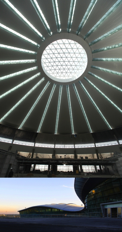 我們常常自問“你如何能夠將你的設計交給“昨天還在拿鋤頭種地,今天要完成梁柱連接處的一級焊縫”的技術要求的農民做好?”。事實上,中國的兩億農民工及農民工頭們在過去的30年就是在做著這樣的事情,這是我們面對的現(xiàn)實。因此要求設計師要畫更細致的詳圖,做更多的工地指導工作,甚至與工人們一起工作。在鄂爾多斯新機場的施工中,為了處理室內檐口設計中的一處設計不完美之處。我與工人連續(xù)幾次爬到高空中的腳手架上,和工人一起研究在腳手架上的高空施工方法。對業(yè)主做細心的解釋工作,最終才達到我們心目中的要求。