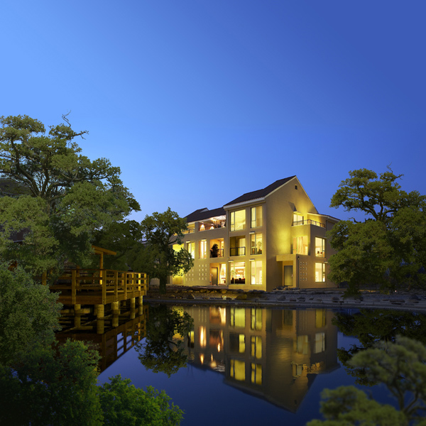 【李鵬】:“可以用“完美”“唯美”來形容我的風格吧,我希望呈現(xiàn)出的建筑攝影是沒有瑕疵的,是想象中的完美境界。我經(jīng)常會遇到未完工的建筑,甲方急于趕宣傳就先拍攝了,但呈現(xiàn)在圖片里的房子已經(jīng)沒有腳手架了,窗戶玻璃是完整的,天空晚霞絢麗,植物茂盛。當然這些效果處理是要本著符合自然現(xiàn)象原則的,不能違背自然規(guī)律。