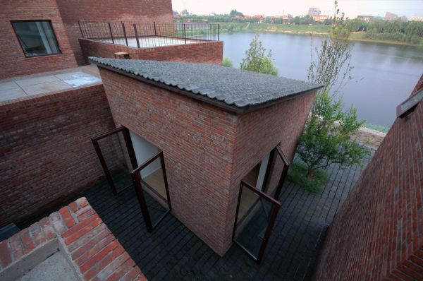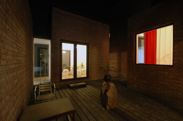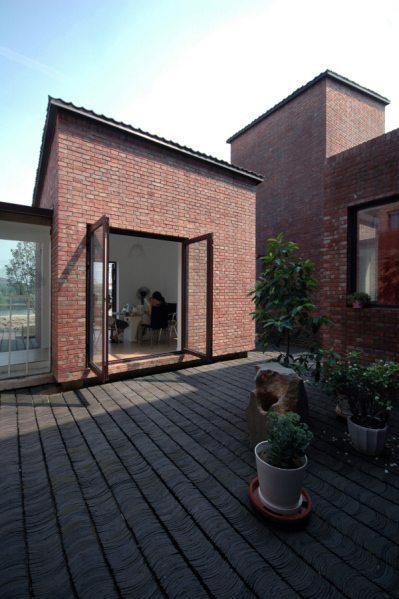 我舉百子甲壹工作室作為例子,這個例子算表達(dá)得比較明確的建筑,也正是上一個問題的具體案例。它雖然坐落在北京宋莊,但它不是一個四合院。但是它的每個建筑空間和院子有直接的對應(yīng)關(guān)系,這個關(guān)系是平等的,是同步完成。所以它有傳統(tǒng)精神。它同樣沒有一個夸張的形式,因為我選擇了本地最普遍最經(jīng)濟的材料和最通常的施工方法。還需要強調(diào)我重視了它在水邊的位置,并且和水面有地勢高差這個環(huán)境條件。當(dāng)然它是自宅式工作室,所以功能非常具體,確定。它帶來的最后的視覺結(jié)果,雖然不是一開始直接追求的,卻是在處理這些關(guān)系的過程中最終呈現(xiàn)出來的。