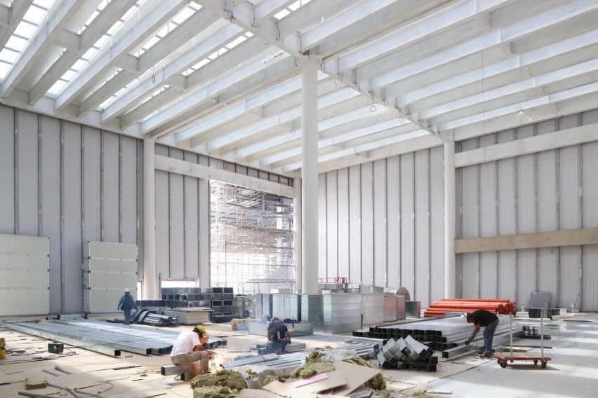 完成的臺(tái)中綠色博物館以透明和流動(dòng)性為主題,將以玻璃和金屬墻為特色,覆蓋在白色金屬網(wǎng)制成的幕墻中。
