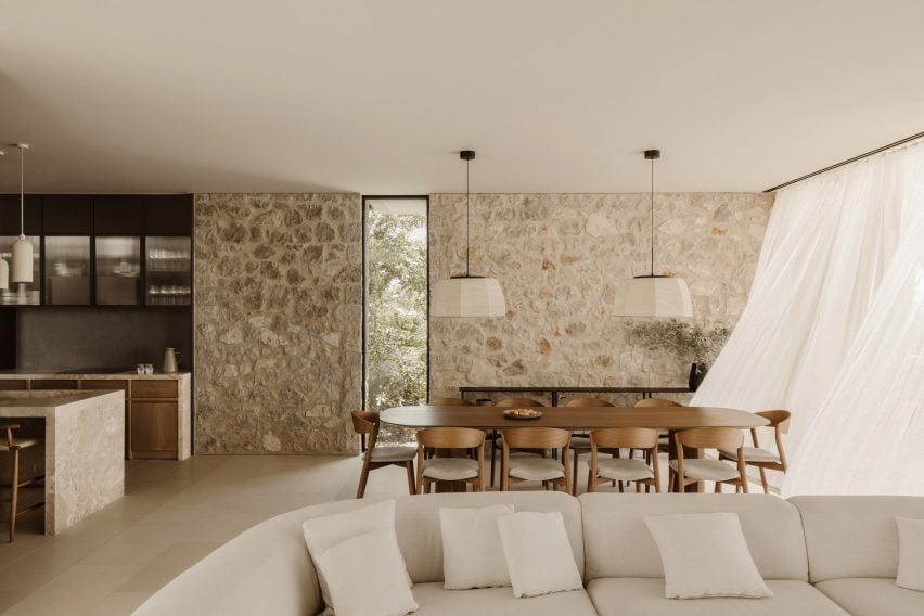 該工作室說,“我們受到了墨西尼亞復(fù)雜的民間建筑發(fā)展的啟發(fā),這里有各種形狀不規(guī)則的石砌建筑,其中包括廣場、庭院和‘卡爾德里米斯’。