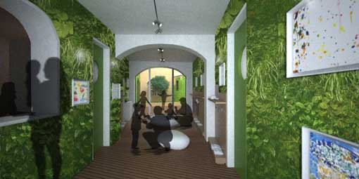 該項目是為一家幼兒園量身定制的,其基本理念便是環(huán)境可持續(xù)化。在這個項目中,有一頗為奇特且與兩個露臺相連的空間,鑒于其20米左右的高度,設(shè)計師將重點聚焦于此高度與孩子身高的比例方面,突出了其革新設(shè)計。