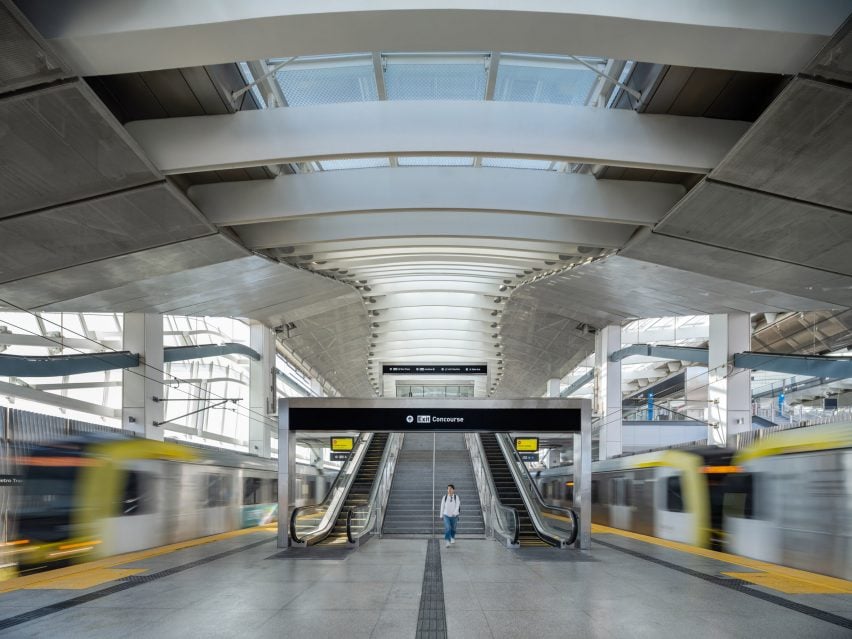 洛杉磯國際機(jī)場/地鐵交通中心由格里姆肖工作室與奧雅納工程公司(Arup)和執(zhí)行建筑師格倫工作室(Gruen Associates共同設(shè)計(jì),是該市更廣泛的陸側(cè)通道現(xiàn)代化計(jì)劃的一部分,該計(jì)劃旨在通過幾個(gè)基礎(chǔ)設(shè)施項(xiàng)目改善進(jìn)出機(jī)場的通道。