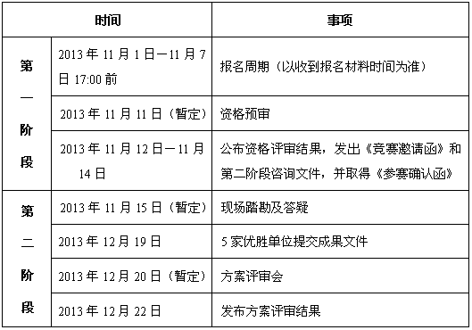 1.3.3第二階段-方案評(píng)審階段,5家入圍單位按要求提交符合要求的成果文件,由評(píng)審委員會(huì)評(píng)選出評(píng)選出第一、二、三名。