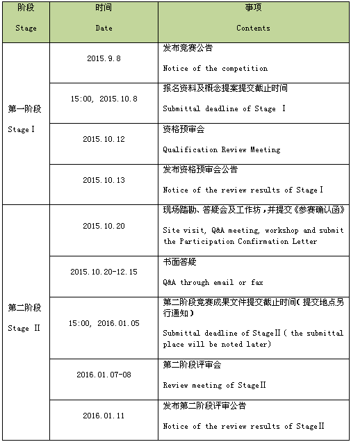 It is an open competition without qualification restriction. Any company with similar design experience can sign up for the competition. And the application must submit the sign-up document and concept proposal according to the competition file. Then the qualification review jury will select 6 competitors to enter Stage Ⅱ and 2 other alternatives in order. If any of the 6 competitors quit, the alternatives will enter by order.