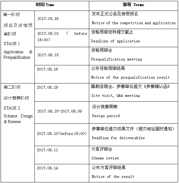 本次競賽工作分為兩個階段進行:第一階段為公開報名及資格預(yù)審階段;第二階段為設(shè)計競賽階段。