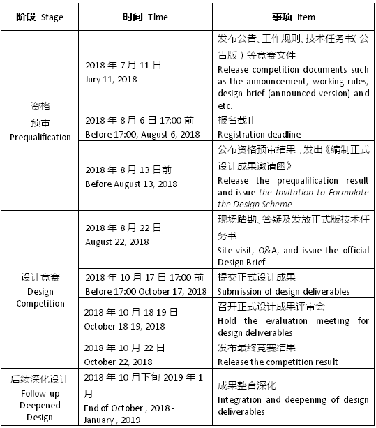 International competition will be adopted to highlight the open, scientific and practical natures of its planning and design. The International Competition will be divided into three stages, namely, "Prequalification", "Design Competition" and "Follow-up Deepened Design".