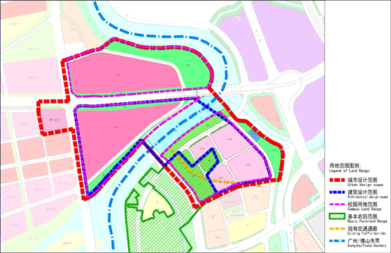 本次城市設(shè)計(jì)設(shè)計(jì)范圍為陳村水道兩側(cè)開放性校園項(xiàng)目用地范圍及其周邊環(huán)境,總用地面積約1506畝(含廣佛薈)。本次城市設(shè)計(jì)應(yīng)將廣佛薈與開放性校園項(xiàng)目及其相關(guān)影響地區(qū)作為整體考慮,重點(diǎn)處理好廣佛薈與校園的空間形態(tài)關(guān)系和交通聯(lián)系、區(qū)域人流與校園人流關(guān)系,濱河(水)岸線設(shè)計(jì)與碧道聯(lián)系,結(jié)合區(qū)域交通組織對南海新交通線路進(jìn)行研究,提出整體城市設(shè)計(jì)方案,提出相關(guān)控制性指標(biāo)和指引,指導(dǎo)校園未來建設(shè)。