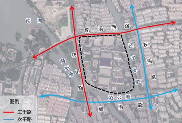 項目位于中國共產(chǎn)黨“紅船”起航地—嘉興南湖東南側(cè),項目四至范圍為:北至南溪西路,南至凌公塘,西至紡工路,東至涇水橋港(詳見下圖)。地塊面積約17.94萬平方米,地上建筑面積約15.48萬平方米。