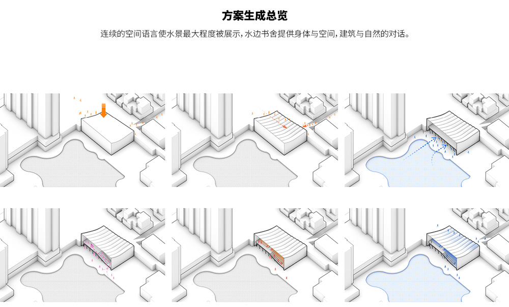 在所有參賽作品中,將建筑與湖體的關(guān)系表達(dá)出很高意境,書與湖的碰撞交融會產(chǎn)生怎樣的劇情?觀者會引起怎樣的共鳴?這些都是本方案帶給我們的啟示。建筑,作為藝術(shù)的一個(gè)門類,能否讓人在文藝層面上足夠認(rèn)同,在實(shí)際體驗(yàn)上又簡單自在,這是我們所追求的社區(qū)書房的場所精神。