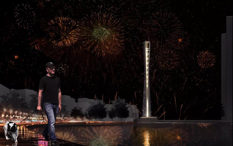有華盛頓方尖碑的場所儀式感,卻更增添了綠色生態(tài)的親近形態(tài)。直插天際的激光射燈,讓燈塔的外延趨于無限。
