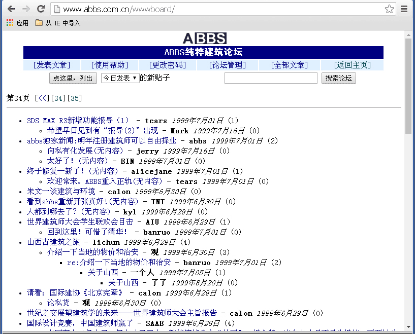 那時(shí)候的ABBSer是中國(guó)最早一批上網(wǎng)的建筑師,也就二三十人吧,是今天的1/100000。