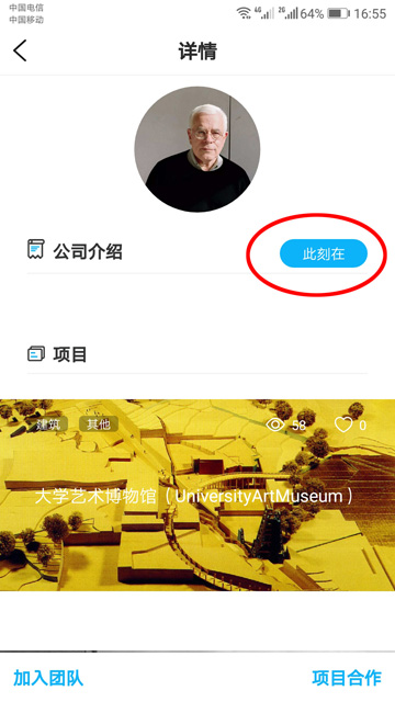 你還可以從設(shè)計公司的主頁(如下)來進入該公司的“此刻在”: