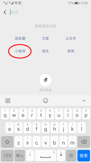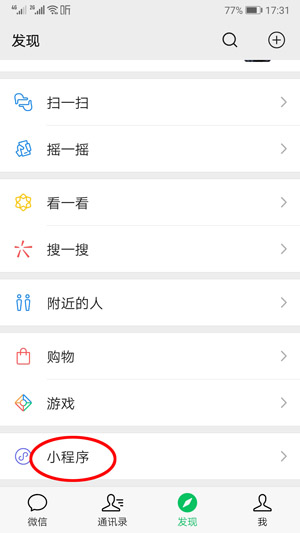 也可以在“發(fā)現(xiàn)”里面的“小程序”那里搜: