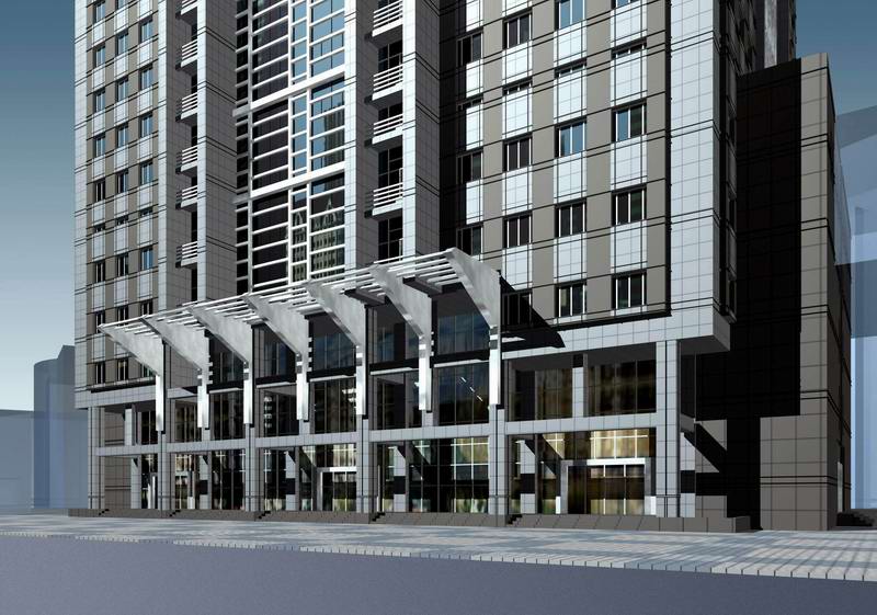 效果圖2:入口模擬,后來補(bǔ)了雨蓬大樣,建成后感覺俗氣