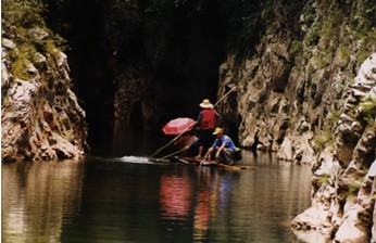 潭漳峽位于重慶市萬州區(qū)五橋移民開發(fā)區(qū)(五橋鎮(zhèn))梨樹鄉(xiāng)境內(nèi),距萬州市區(qū)76公里。峽谷全長21公里,24個支峽。梨樹鄉(xiāng):人口6千,面積6千平方公里,海拔200--1400米。貧困鄉(xiāng)。 為了早日揭開潭獐峽神秘面紗,2月23日((周五)我們8個渝驢于晨8:30從重慶汽車北站前往萬洲的潭獐峽。重慶至萬洲亞星:58元/人 安凱85/人 309公里 6小時的車程,到達(dá)萬洲是下午2點鐘左右。行前同萬洲區(qū)五橋旅游局付局長聯(lián)系妥當(dāng)由他來接我們,因此我們節(jié)省了不少聯(lián)糸乘車的時間。付局長表示用車2天半需500元。(日常車站在碼頭,每日早晨一班,票價15元?上扰c付局長聯(lián)糸租車或到萬州后自行租車?赡苘噧r會漲)吃過午飯車行2小時左右到達(dá)梨樹鄉(xiāng),鄉(xiāng)長聽說我們是來潭獐峽先探路再回去宣傳,接待非常熱情,并表示因我們是第一批重慶的游客,在梨樹鄉(xiāng)的吃住全免。這讓我們感到梨樹鄉(xiāng)人對我們宣傳潭獐峽所寄予的厚望,肩負(fù)歷史重任的感覺由然而生。當(dāng)晚住在梨樹鄉(xiāng)。晚餐付局長、鄉(xiāng)長、書記、鄒副鄉(xiāng)長作陪,也發(fā)揮出了特別能吃苦的精神,來了個臉紅脖子粗,我們多數(shù)亦是紅霞滿天飛。土豆燉臘肉--味道好極了。除獨唱外,一夜無話。 晨7:00熱情的主人已來叫我們觀日出了,鄉(xiāng)政府宿舍樓頂是個制高點,只見潭獐峽籠罩在薄紗中,只有些許山尖時隱時現(xiàn),層層的梯田、千年的香桂和楓香樹、裊裊的炊煙、旭日初升,一切都有了生命,鮮活了起來。趕緊掏出 相機(jī),來了一陣亂劈柴。 按照付局長設(shè)計的線路,鄒副鄉(xiāng)長作了全程導(dǎo)游。9:00乘專車下行至峽谷底橋頭(距梨樹鄉(xiāng)約7公里)便下車,開始了徒步穿越。我換上了高幫解放鞋,一路輕松無比。先后幾個登山鞋紛紛失足,不由得對我羨慕不已。晴陰峽是第一個支峽,沿峽而上,除有幾處較滑外并不算難,當(dāng)然手套自是不可少的。前行不到1000米便到了三層佛手的景點,只見瀑布珠簾一般(未到雨季水量較小)落在佛手上,繞著小潭攀上近20米高的山崖,導(dǎo)鄉(xiāng)長告訴是多年前當(dāng)?shù)厝硕銘?zhàn)亂時的地方。青滕的遮掩下確實不錯。返回主峽后于12:30到了第二個支峽--天王峽,該峽共有5級瀑布,我們只走了前2級。瀑布后有一溶洞,不大,需用手電。穿出溶洞用砍刀劈開帶刺的灌木還可往上爬,我們都沒帶刀只好返回。鄉(xiāng)長問大家是否恐高,大家都不愿錯過好景跟著鄉(xiāng)長上了瀑布右邊山崖上的7層瑤池。去瑤池的路有些險,在離地面20多米山腰上一條10多厘米寬的路,只能抓住巖壁上生的草側(cè)身而過。熱中攀巖或刺激的驢一定不能錯過。瑤池沒水現(xiàn)已枯了5層,著實讓人遺憾。liu21為了超越自我,堅持與大部前去,在山坡棧道上滑倒,下墜2米多嚇得一身冷汗,獨自回。 下午2:00已餓得野生摘耳根拔出就吃的8驢,終于趕到雙柏村世外桃源。楠竹林前一農(nóng)家正是我們午餐的所在,付局長迎接我們時說老劉家已將午飯準(zhǔn)備妥當(dāng),溫?zé)岬募t苕稀飯、臘肉、5-6種咸菜等滿滿一桌,我們感動不已。我埋頭苦干了4碗方才剎車。待全部吃完下席后,老劉全家才吃,再一次被純樸的鄉(xiāng)親感動。老劉家后便是一座大山,年前才修好棧道,非常陡。 下午由老劉帶領(lǐng)穿越了又一支峽,據(jù)介紹該峽的水可治皮膚病。萬州有一大戶為此在不遠(yuǎn)處花幾百元置地一塊,建房隱居,簡直太混賬了,這才叫腐敗。從支峽回到主峽往下走,在右邊的山上有一大溶洞叫蝙蝠洞,艱難地攀滕而上才得以進(jìn)入。老劉據(jù)說洞很大,走過大洞匍匐穿一小洞口又是一大洞,這樣反反復(fù)復(fù)在洞中可走2-3小時。進(jìn)入不遠(yuǎn)洞壁便發(fā)現(xiàn)有許方蝙蝠,地上也有大量的糞。由于陰河將前行的路幾乎堵死,涉水都難以通過要在地面爬過去。這時有人建議全體男女裸體爬過去回來再穿衣服,無人響應(yīng)。復(fù)返回主峽不遠(yuǎn),我與表哥探得一支峽非常獨特,盡頭呈近百米的天坑,瀑布從約60米高處落下,水潭較大,植被濃郁,很好看。 沿主峽前行有一大崖洞,住在大崖洞里的老楊家不可不去,門前兩口大棺材、奇特的取水工具,極盡展現(xiàn)了崖洞人家的風(fēng)格。如選擇露營,此處可作營地。 從大崖洞出來沿路返回到世外桃源吃晚餐,我們硬塞給了老劉50元飯錢,再三推辭后,老劉才免強(qiáng)收下。晚飯后來到世外桃源對面的巖洞。這巖洞同華巖寺的華巖洞相似。 晚上準(zhǔn)備搞篝火聯(lián)歡會,星光燦爛的時候,雙柏村支書及村民三三兩兩的來到我們的駐地,當(dāng)?shù)氐拇▌逢犚瞾碇d。對面山上不時還能見到村民打著火把、電筒趕來,鄉(xiāng)長說最遠(yuǎn)的是從十多公里外(絕未夸張)趕來,自從土地下戶后,未經(jīng)通知自發(fā)參加的活動,這還是第一次。不多時已有50余人,可說是全村人都到齊了。大家都感到意外。付局長借機(jī)給眾村民進(jìn)行了宣傳動員,號召鄉(xiāng)親們要用最純樸、最真摯的熱情來召待游客。我代表渝驢們也向全體村民表示了感謝,并提了建議。聯(lián)歡會開始時鄉(xiāng)親們還略顯羞涉,但氣氛在對歌中達(dá)到高潮,當(dāng)?shù)?0歲的老太、盲人都唱起了山歌,眾驢友更是獨唱、合唱紛紛引吭高歌,火光映紅了大家的臉龐,