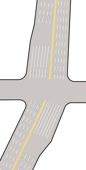 措施二 拓寬六個信號燈交叉口,車道數(shù)進(jìn)六出四