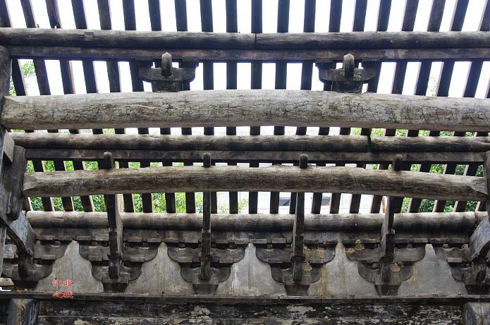 “這是古建筑的一個大特點!变峡h文管所副所長徐林介紹,它的學(xué)名叫做側(cè)腳,作用是防震減震。當(dāng)有外力作用于建筑物時,可以減少一部分外力沖擊,下面間距大,上面間距小,四周柱子都不是垂直的,而是向內(nèi)微微傾向,這使得建筑物的構(gòu)架更加穩(wěn)定。