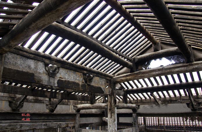 16根粗壯的木柱,頂起了這棟重慶最古老的建筑。仔細(xì)看,柱子的中、下二段平直一樣,它們身材均稱,越向柱尾越是收小,和我們常見的不一樣。
