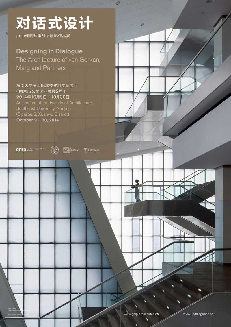 以對話式設計為主題的gmp馮•格康瑪格及合伙人建筑師事務所建筑作品國際巡回展將在2014年10月于南京東南大學舉行。東南大學始建于1902年,是中國最早建立的高等學府之一,其建筑學院是中國最優(yōu)秀的建筑學院之一。該展覽由gmp與UED建筑雜志社和Verseidag公司合作舉辦。展覽將在2014年10月9日至10月30日間舉行。曼哈德•馮•格康及其中國建筑設計行業(yè)的知名人士和其他客人將出席10月9日的開幕儀式和隨后舉辦的設計對話會。