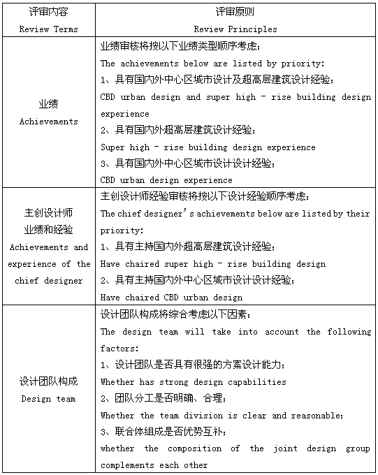 2)有類似設(shè)計(中心區(qū)城市設(shè)計或超高層建筑設(shè)計)經(jīng)驗的團隊將優(yōu)先考慮;