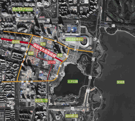 后海北起濱海大道,東臨沙河西路,南至東濱路,西接后海濱路,總面積約2.26平方公里。以“三橫一縱”作為規(guī)劃結(jié)構(gòu),其中深圳灣大街東延段立體系統(tǒng)西接深圳灣大街、東通達(dá)人才公園以及海灣,南北兩側(cè)布局有重要地標(biāo)性企業(yè)總部,是后海中心區(qū)未來最重要的主軸線之一,具有重要的聯(lián)通、展示作用。