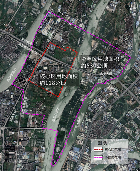 本次城市設(shè)計規(guī)劃范圍約648公頃,東至北海水道、西至洪屋渦水道、南至橋東路、北至實驗路。其中核心區(qū)用地面積約118公頃,東至赤滘口河、西至望洪路、南至梅沙大道,北至水鄉(xiāng)管委會北側(cè)規(guī)劃道路。協(xié)調(diào)區(qū)用地面積約530公頃(詳見圖1及附件1)。